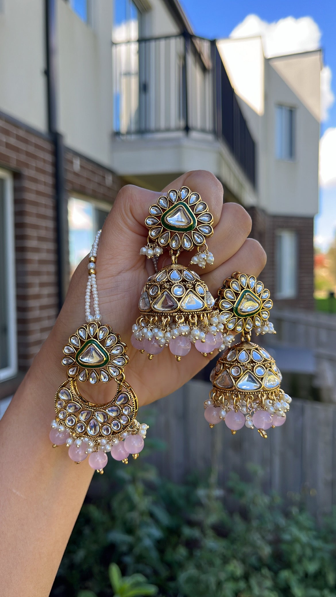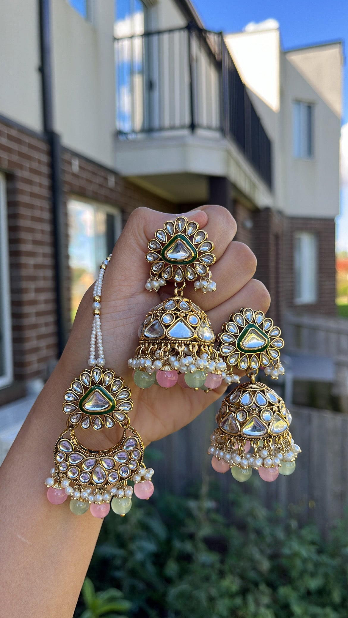 High Quality Light Weight Kundan Jhumkis with Tikka