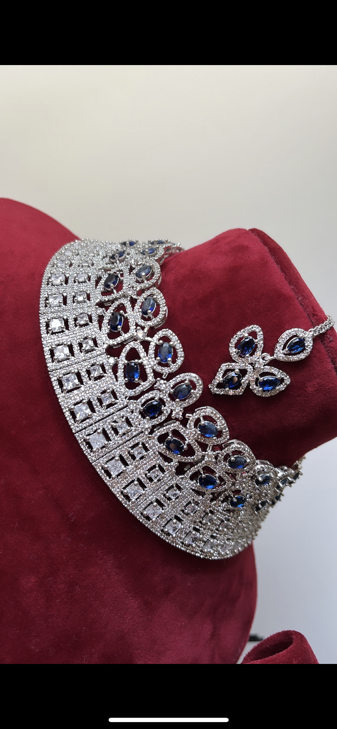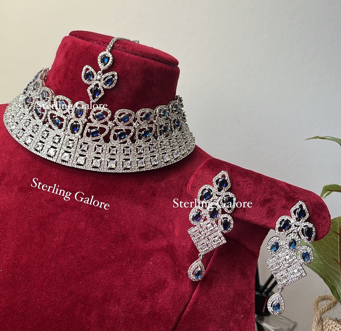 Semi-bridal Silver and Blue AD set with Earrings and Tikka