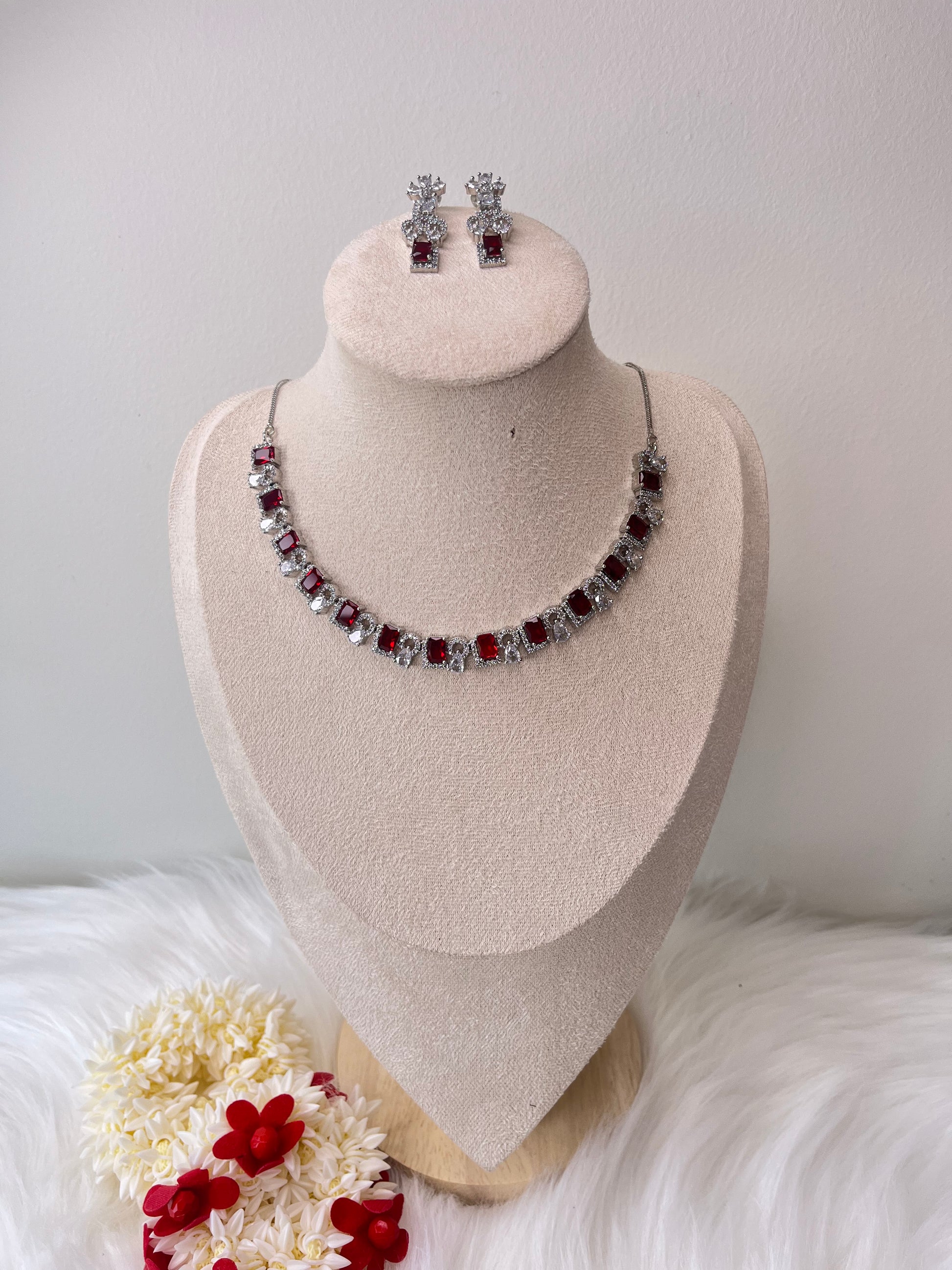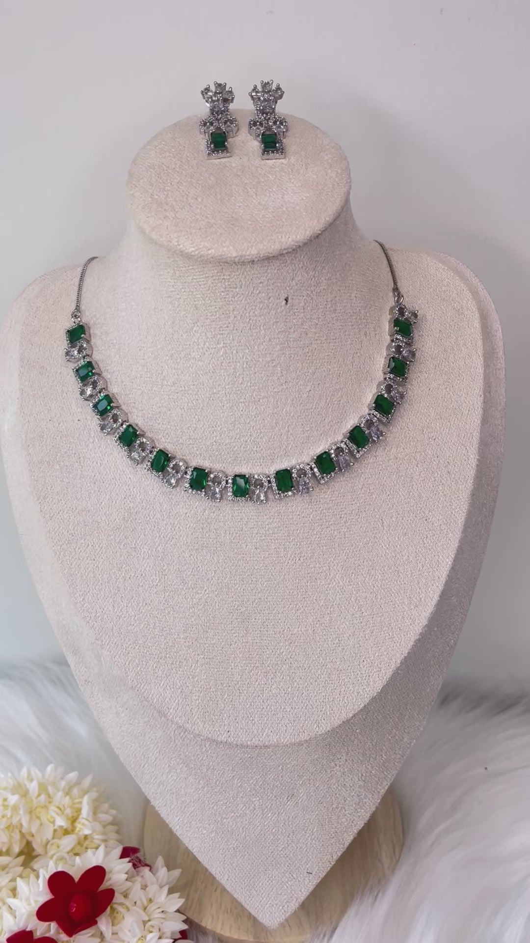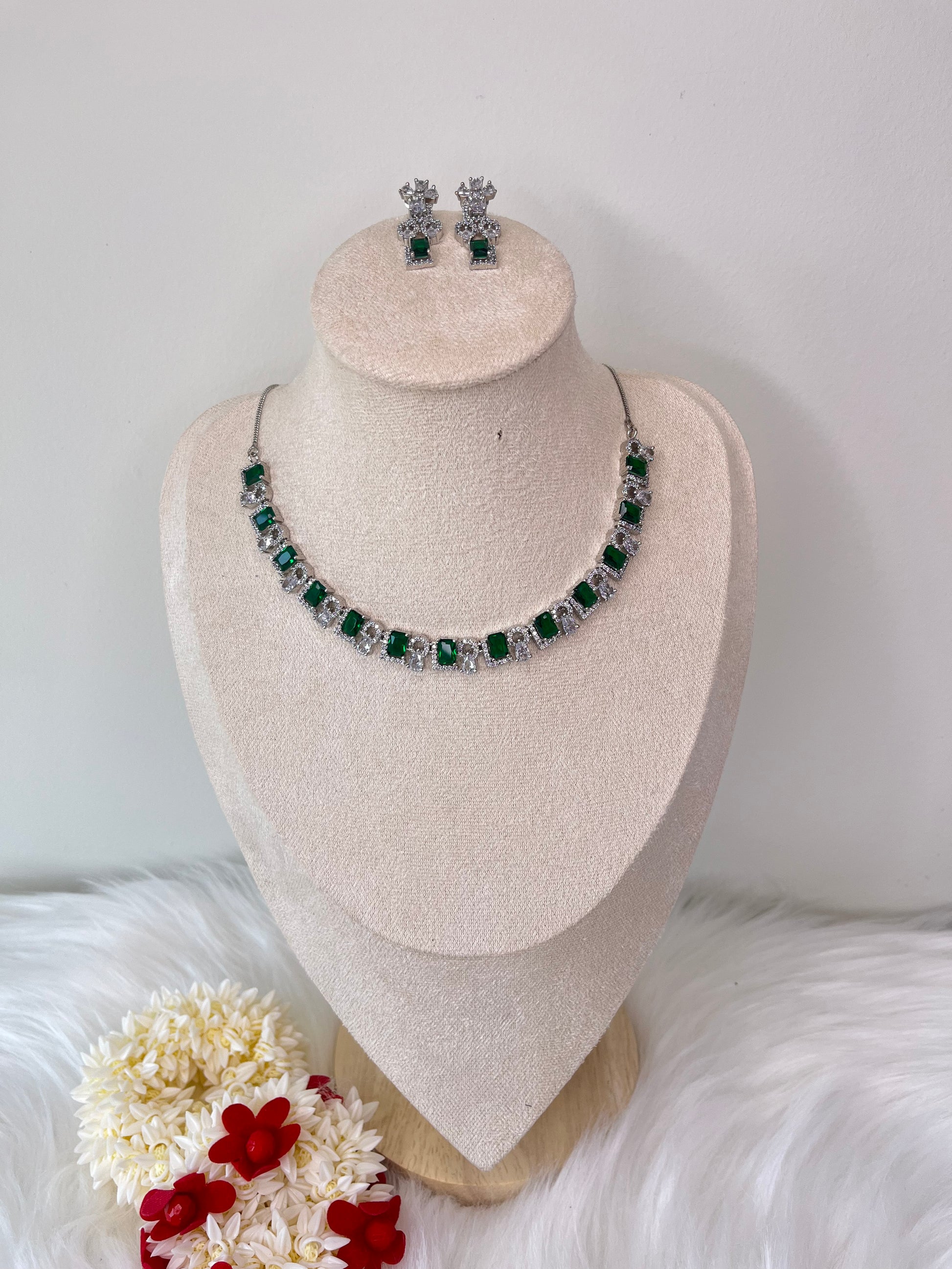Elevate your elegance with this stunning American diamond set, where timeless sophistication meets modern allure. Each piece is meticulously crafted to capture light and attention, making it the perfect accessory for any occasion. Let this set be a testament to your refined taste and a dazzling addition to your collection.