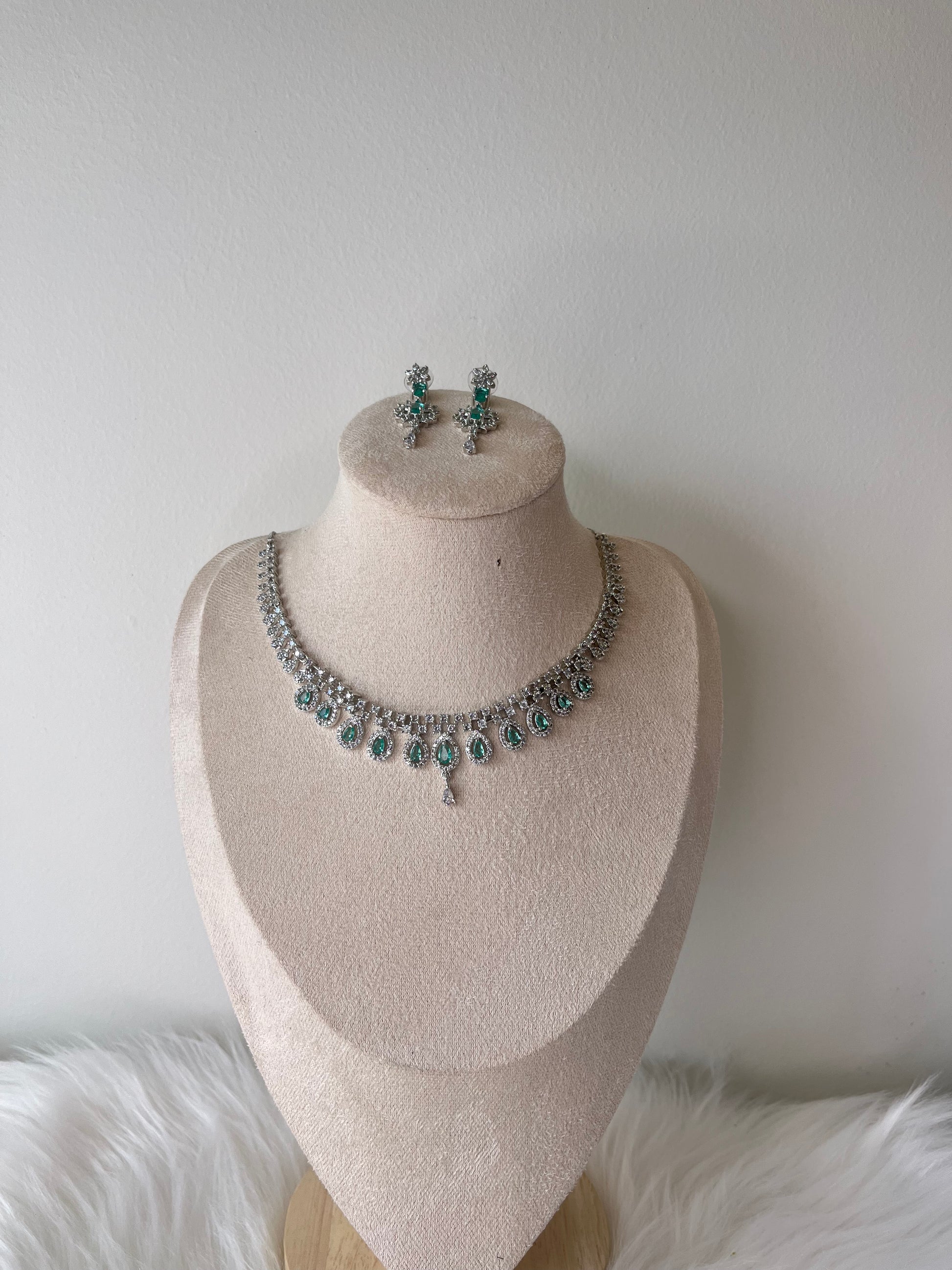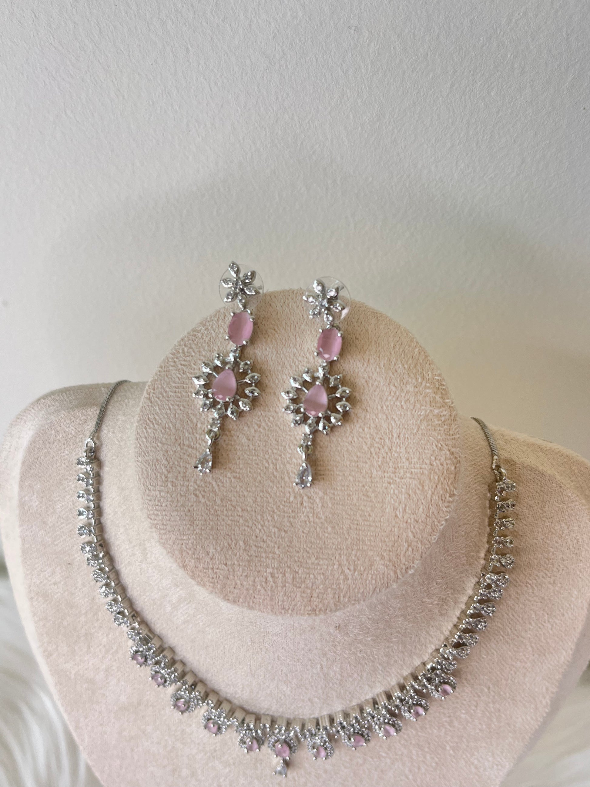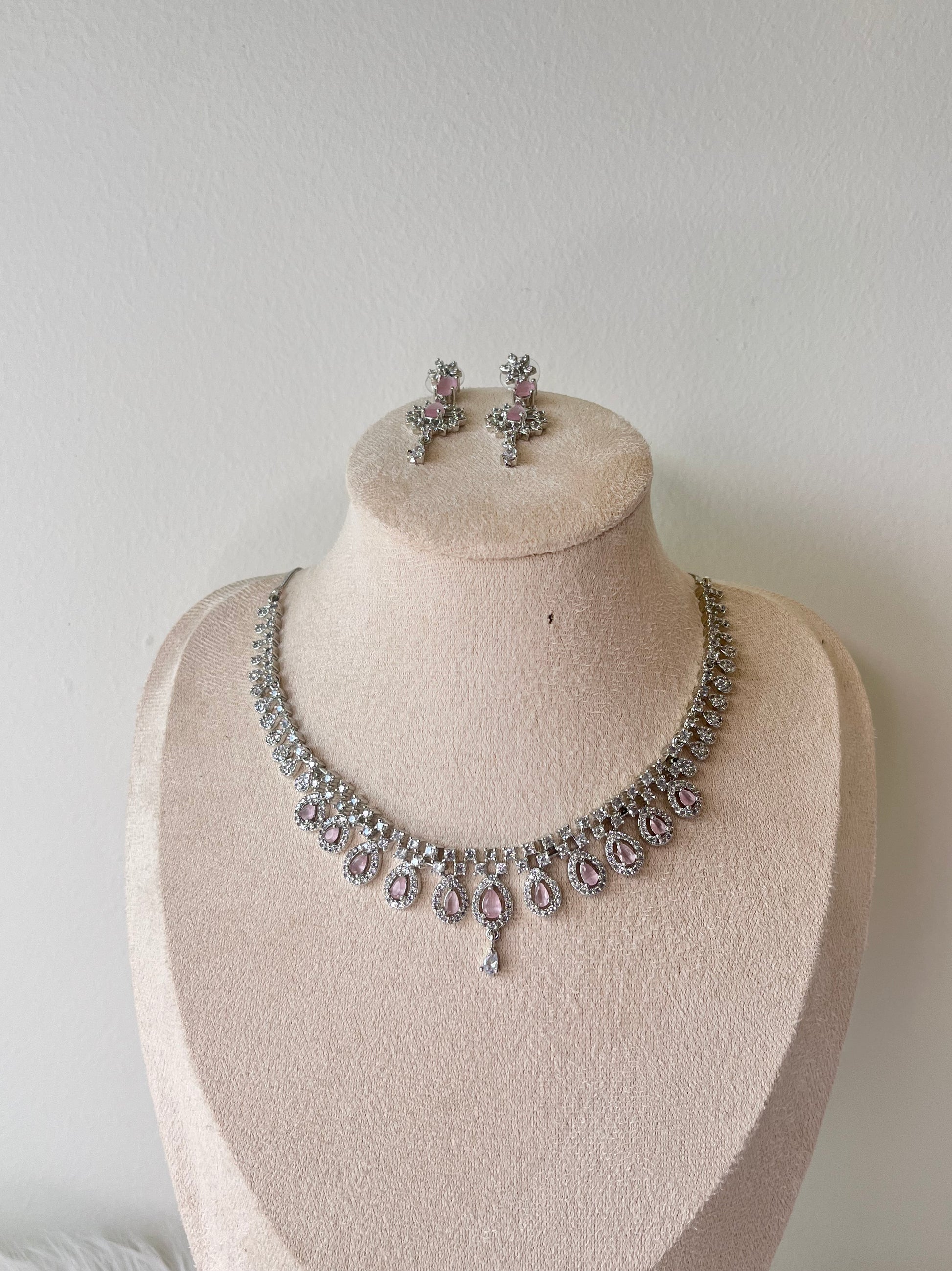 Elevate your elegance with this stunning American diamond set, where timeless sophistication meets modern allure. Each piece is meticulously crafted to capture light and attention, making it the perfect accessory for any occasion. Let this set be a testament to your refined taste and a dazzling addition to your collection.