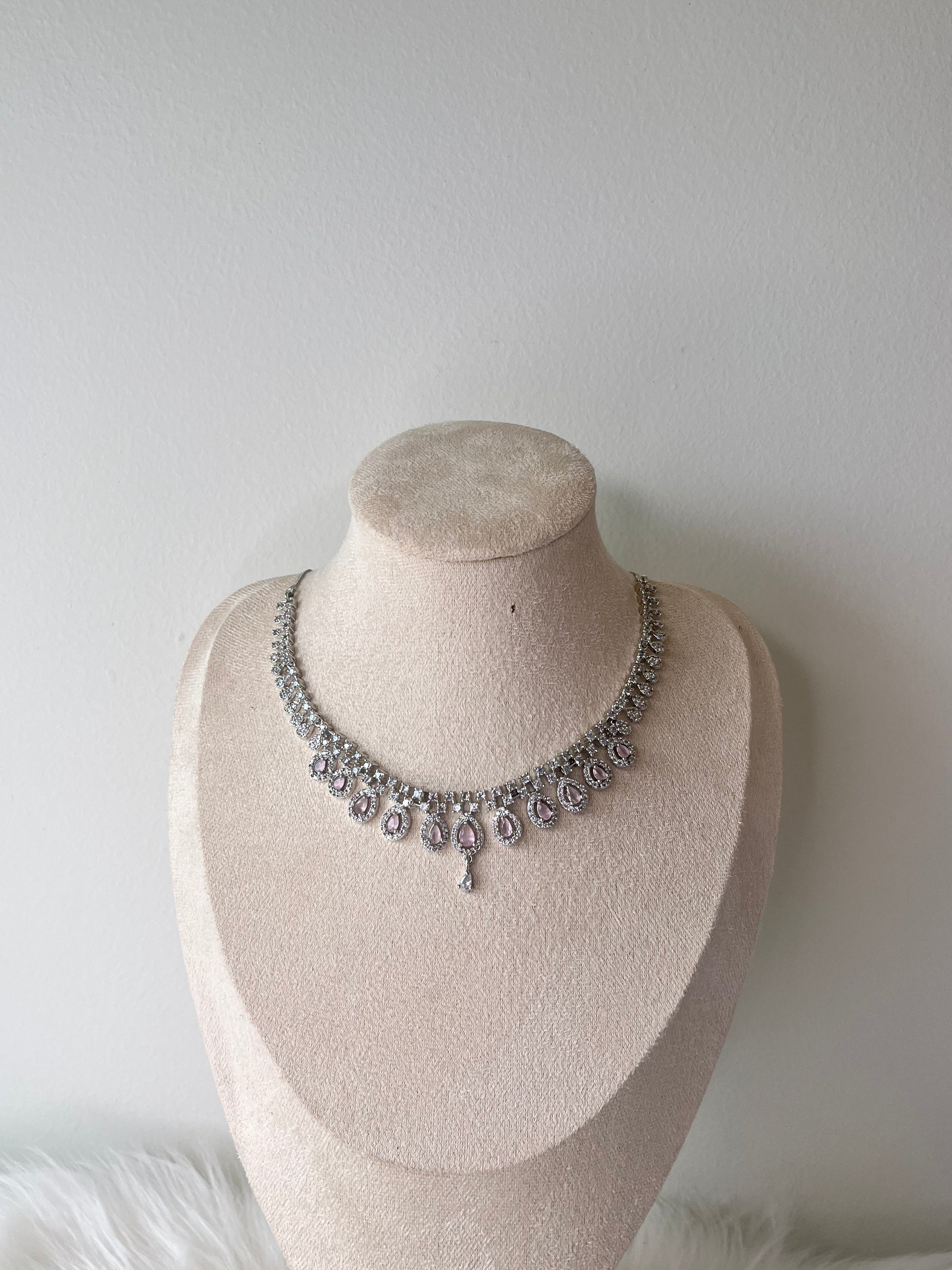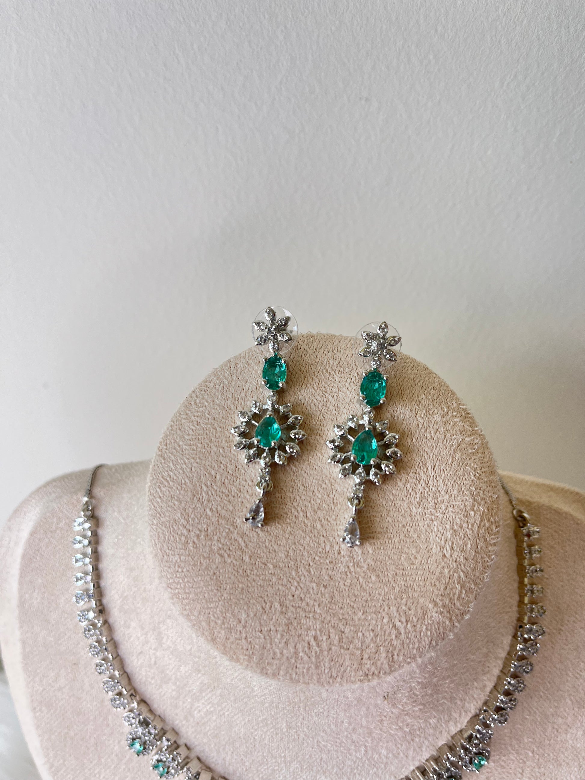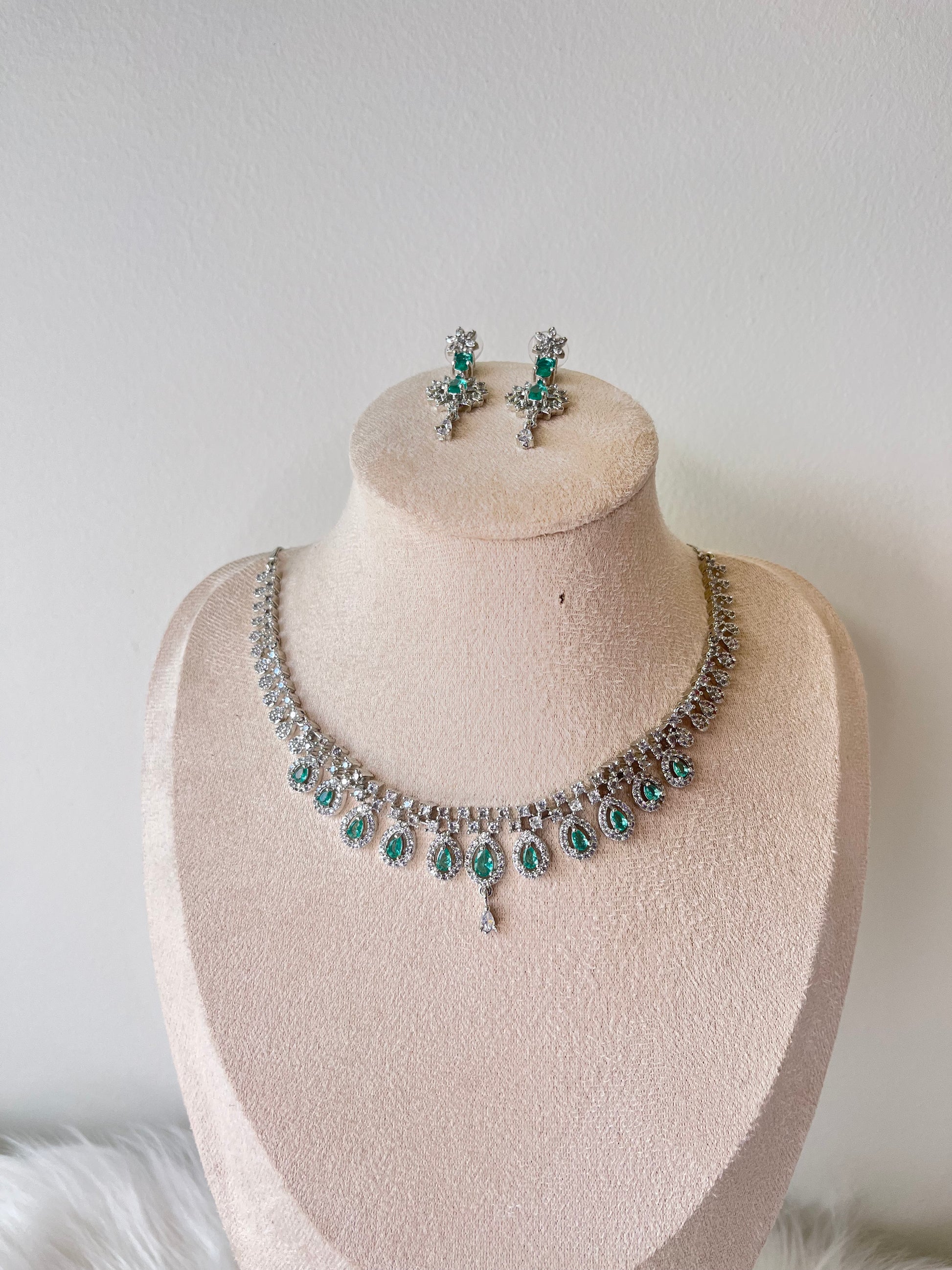 Elevate your elegance with this stunning American diamond set, where timeless sophistication meets modern allure. Each piece is meticulously crafted to capture light and attention, making it the perfect accessory for any occasion. Let this set be a testament to your refined taste and a dazzling addition to your collection.