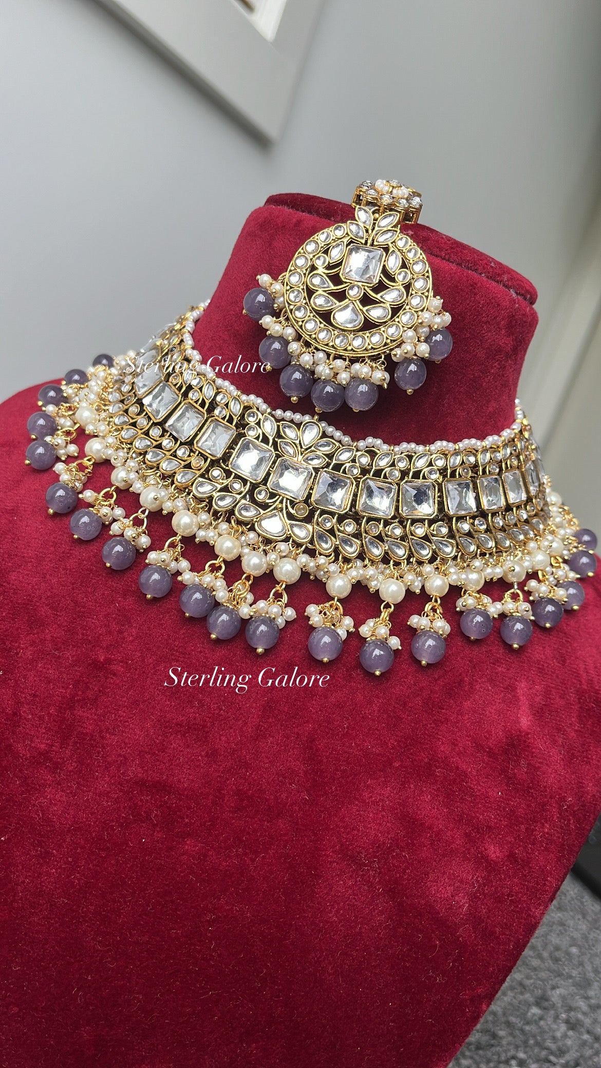 Beautiful High Quality kundan semi-bridal set with Light weight Earrings and a Tikka