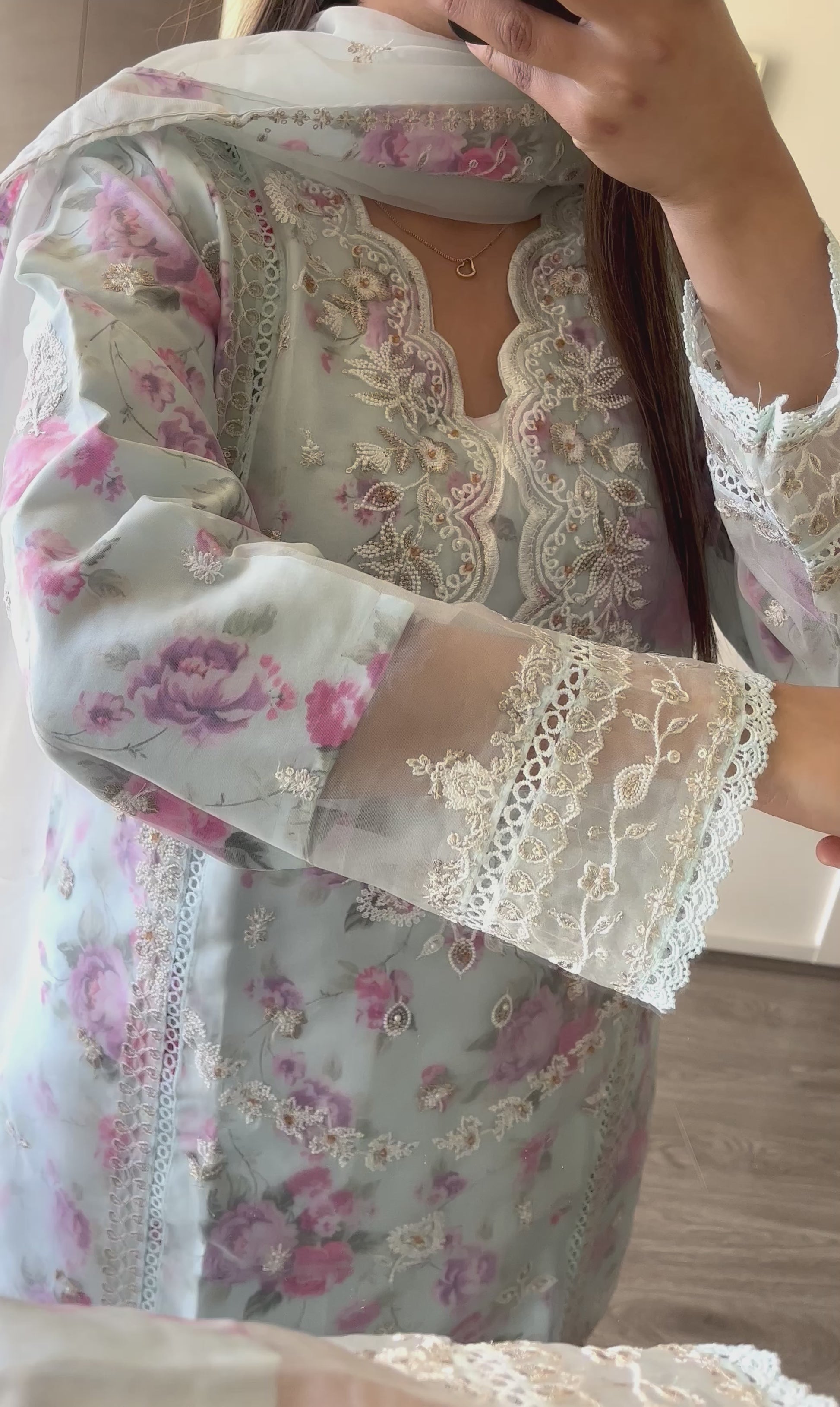 Pakistani Style Pure Organza Suit with moti and threadwork 💕