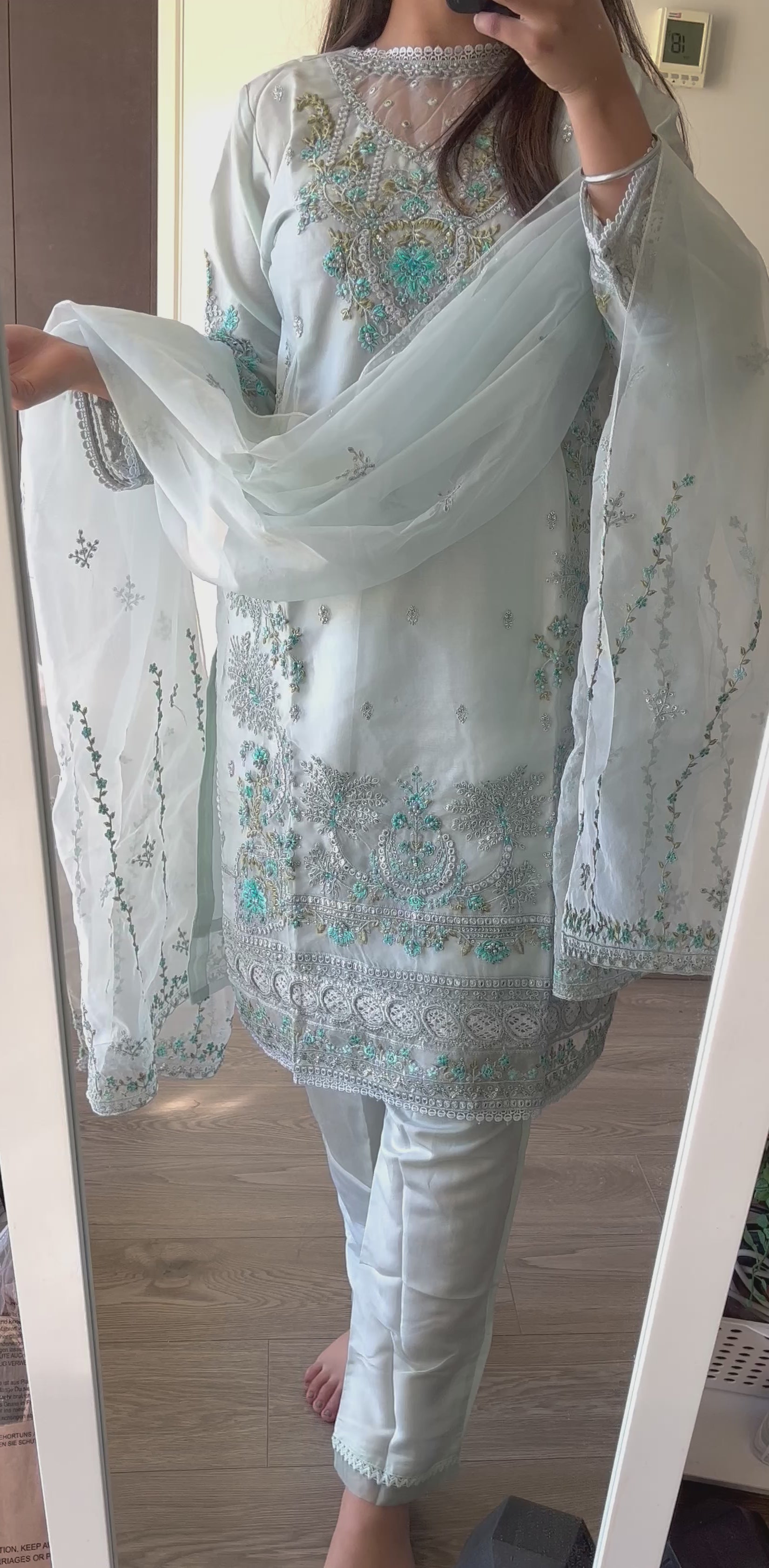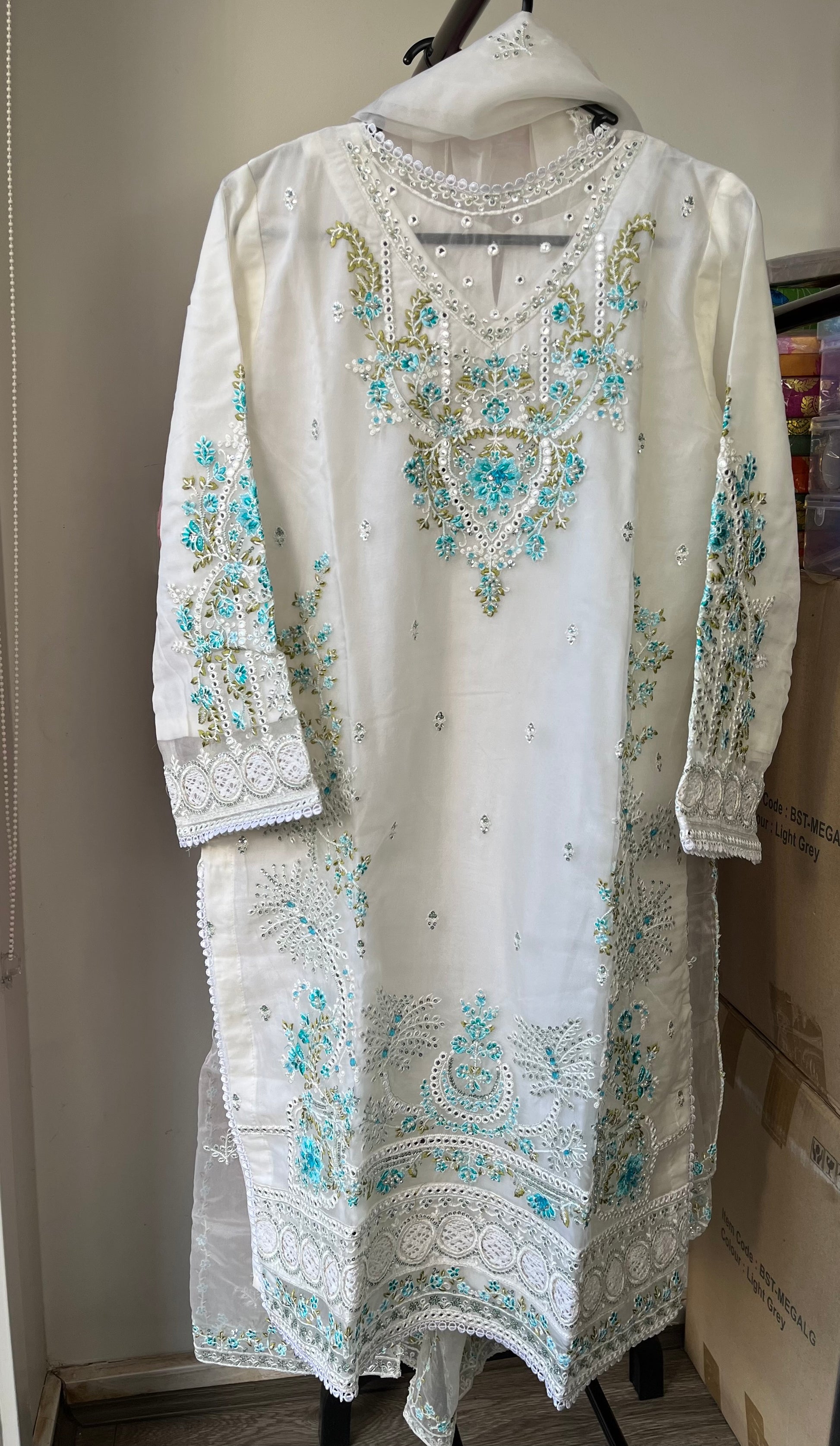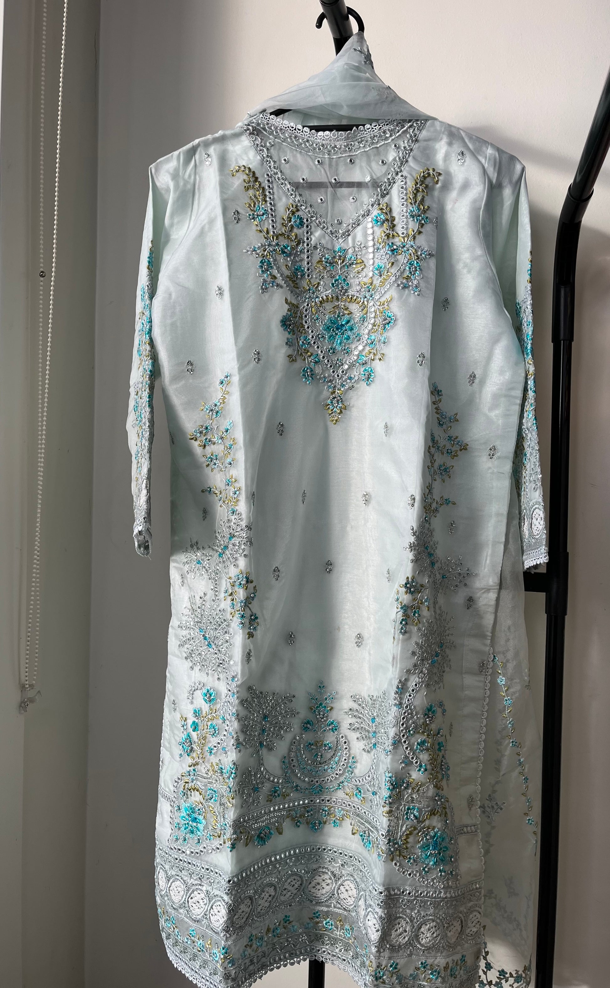 Pakistani Style Pure Organza Suit with moti and threadwork 💕