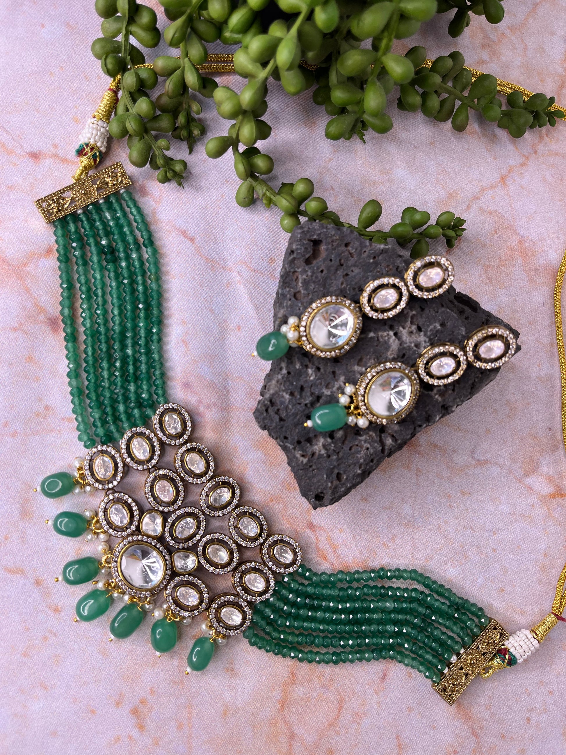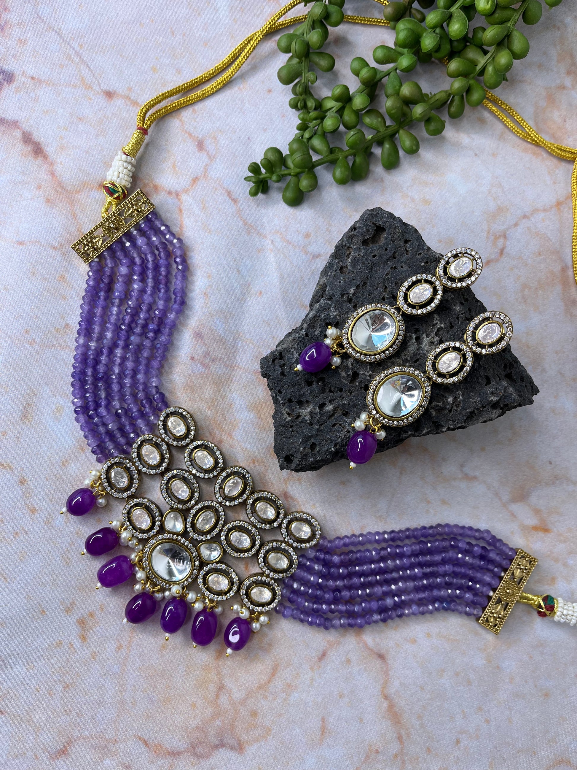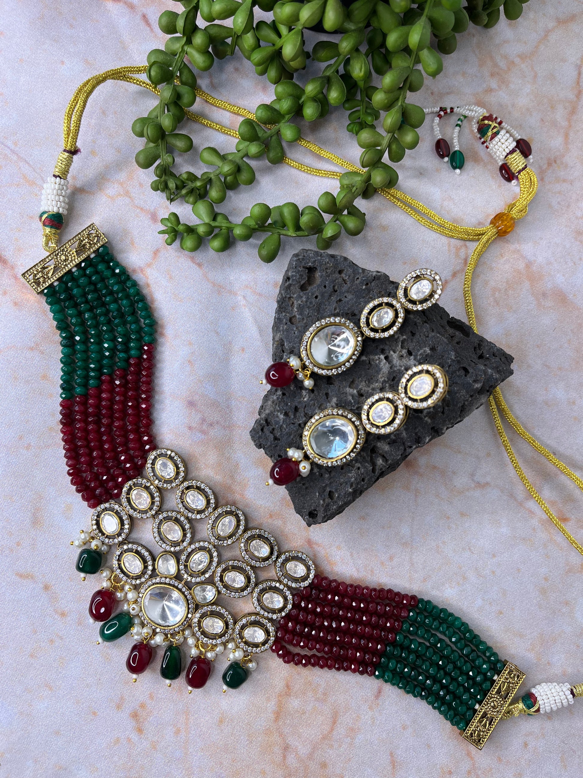 Premium quality silver foil Polki chokers in stunning colours with Polki Earrings