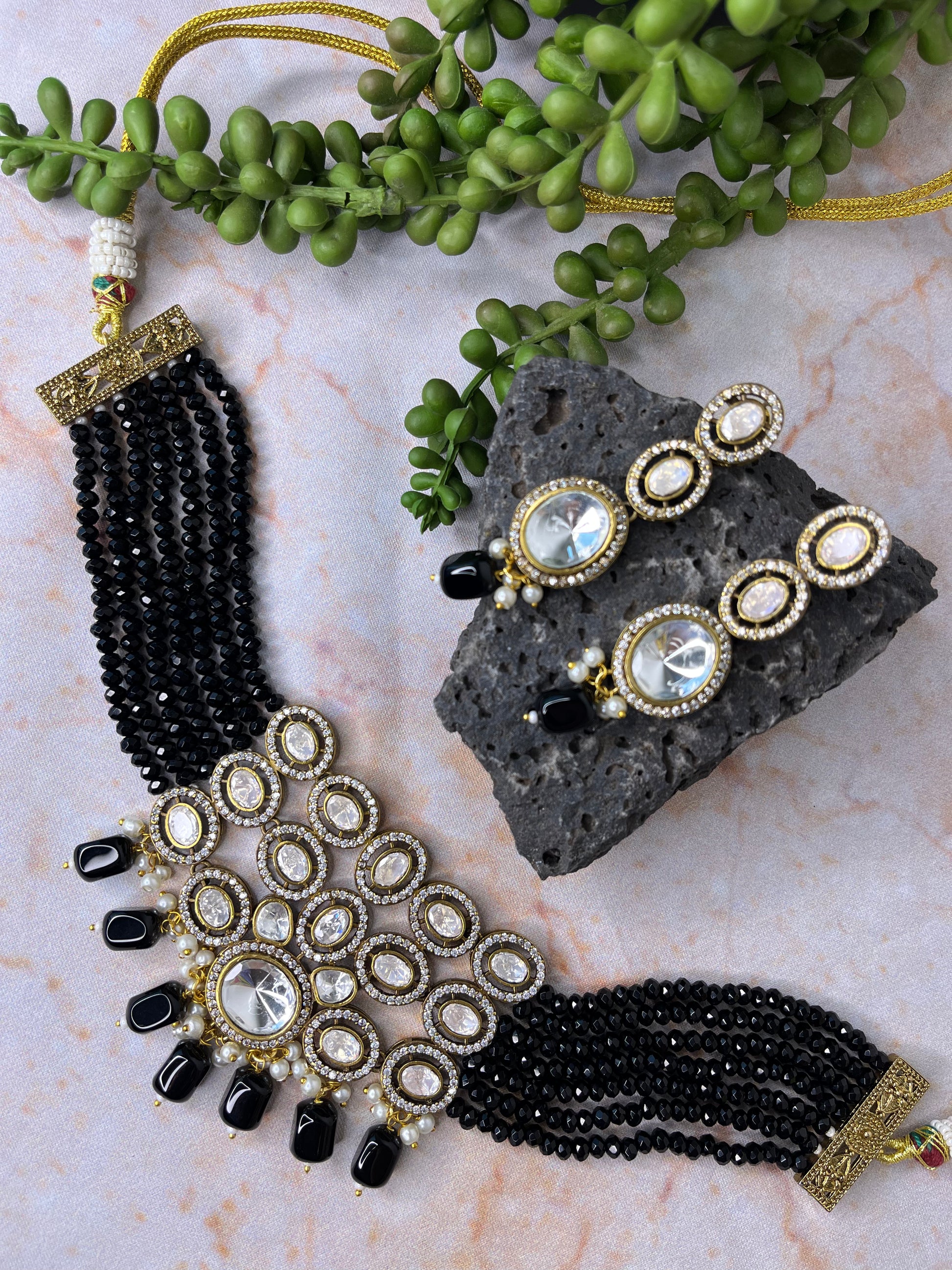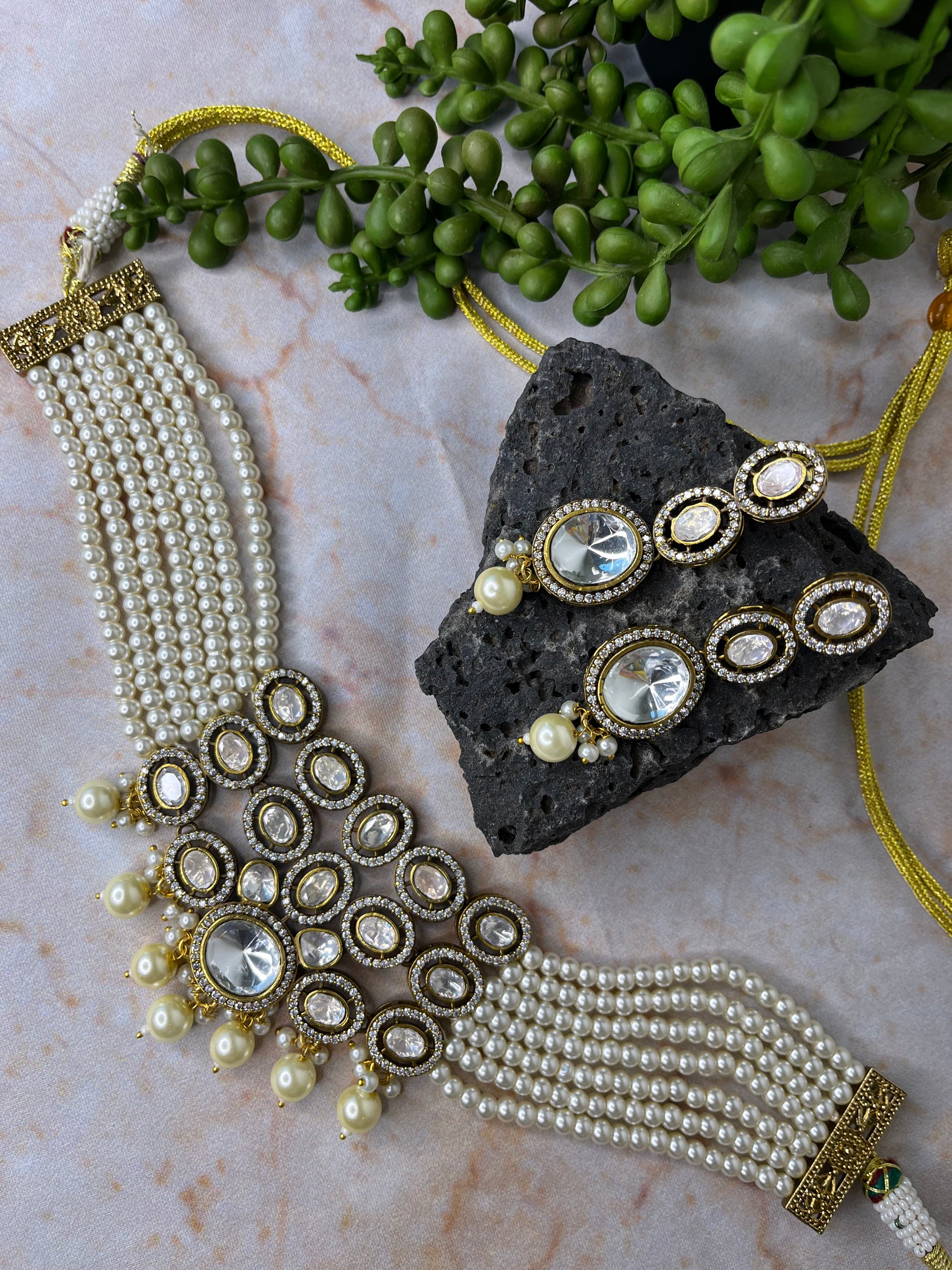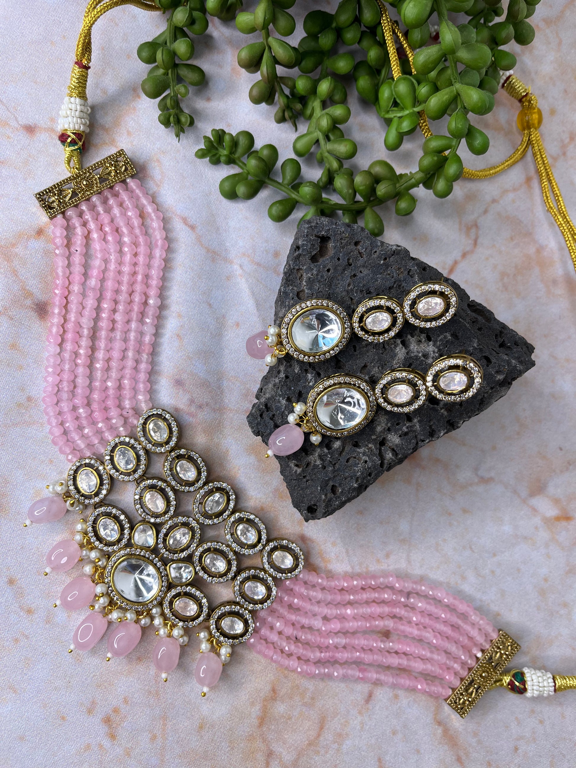 Premium quality silver foil Polki chokers in stunning colours with Polki Earrings