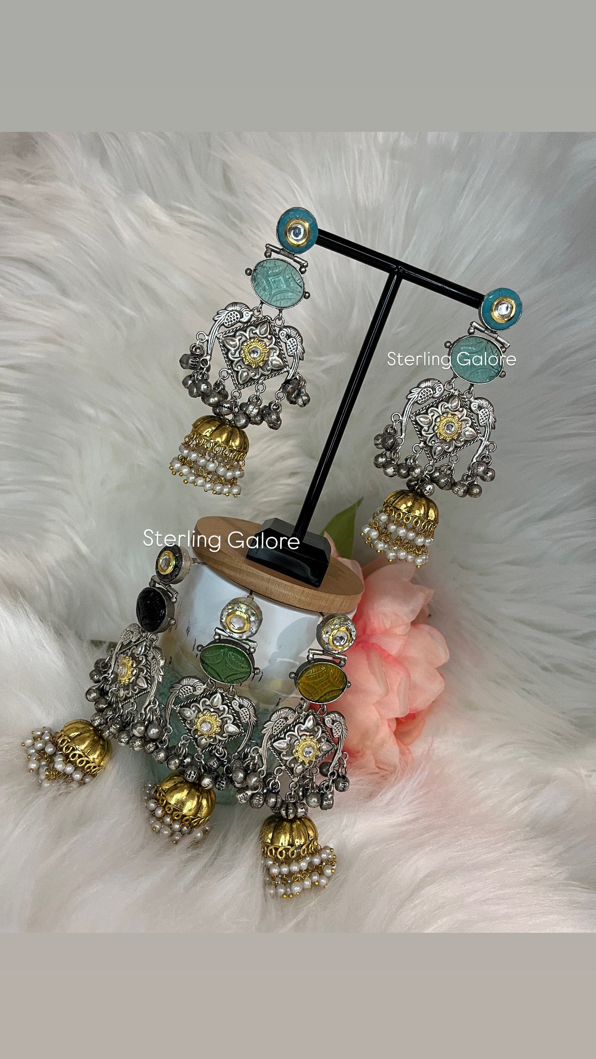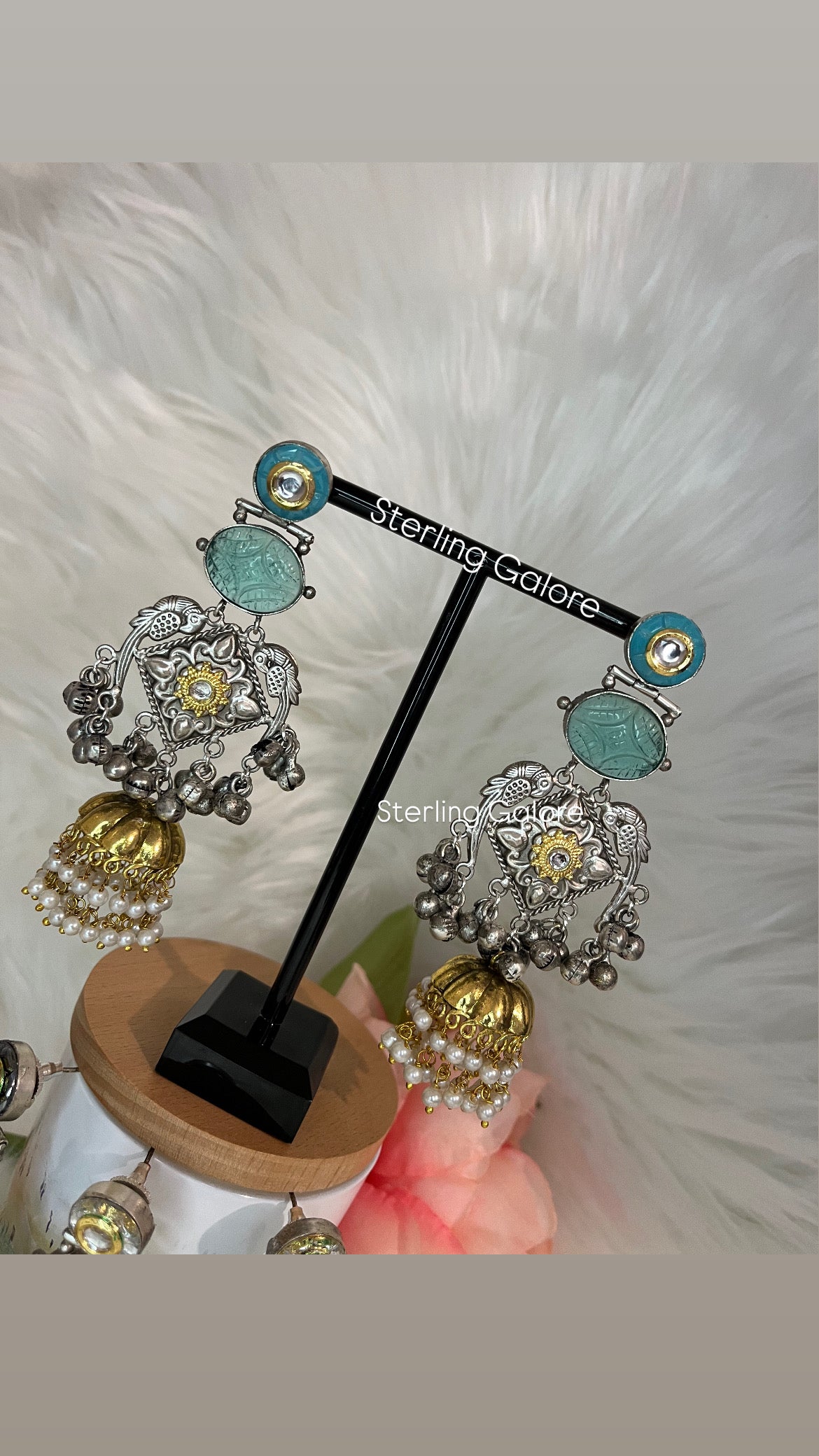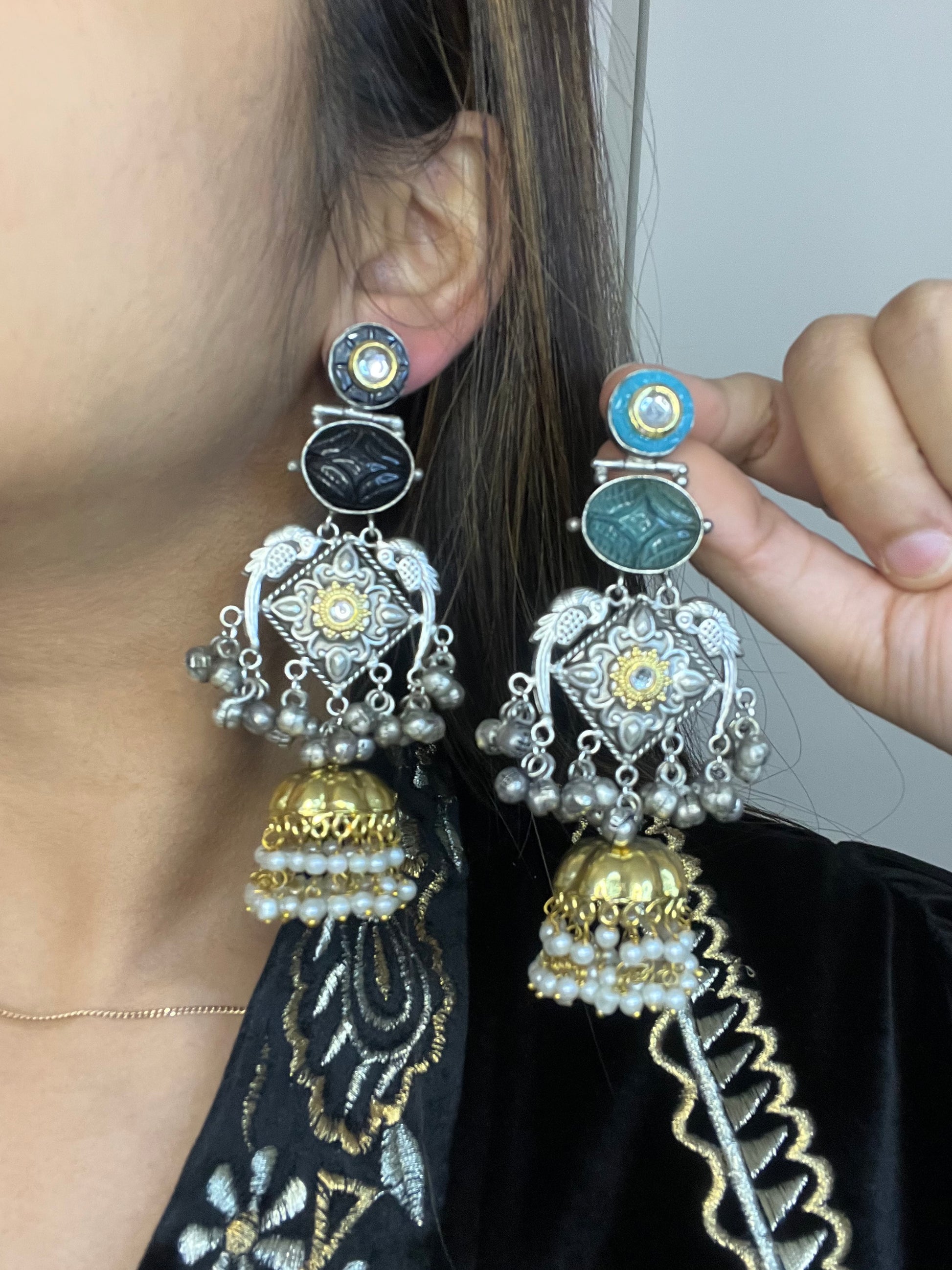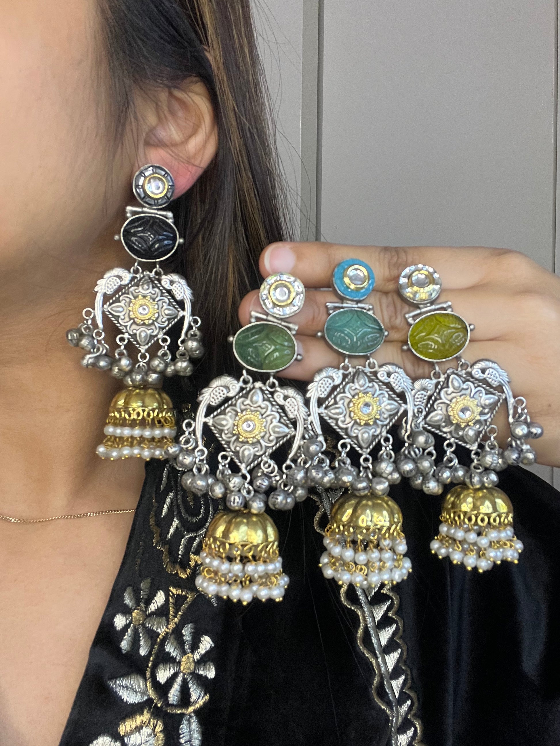 Extremely Light in weight beautiful Oxidised double tone Jhumkis
