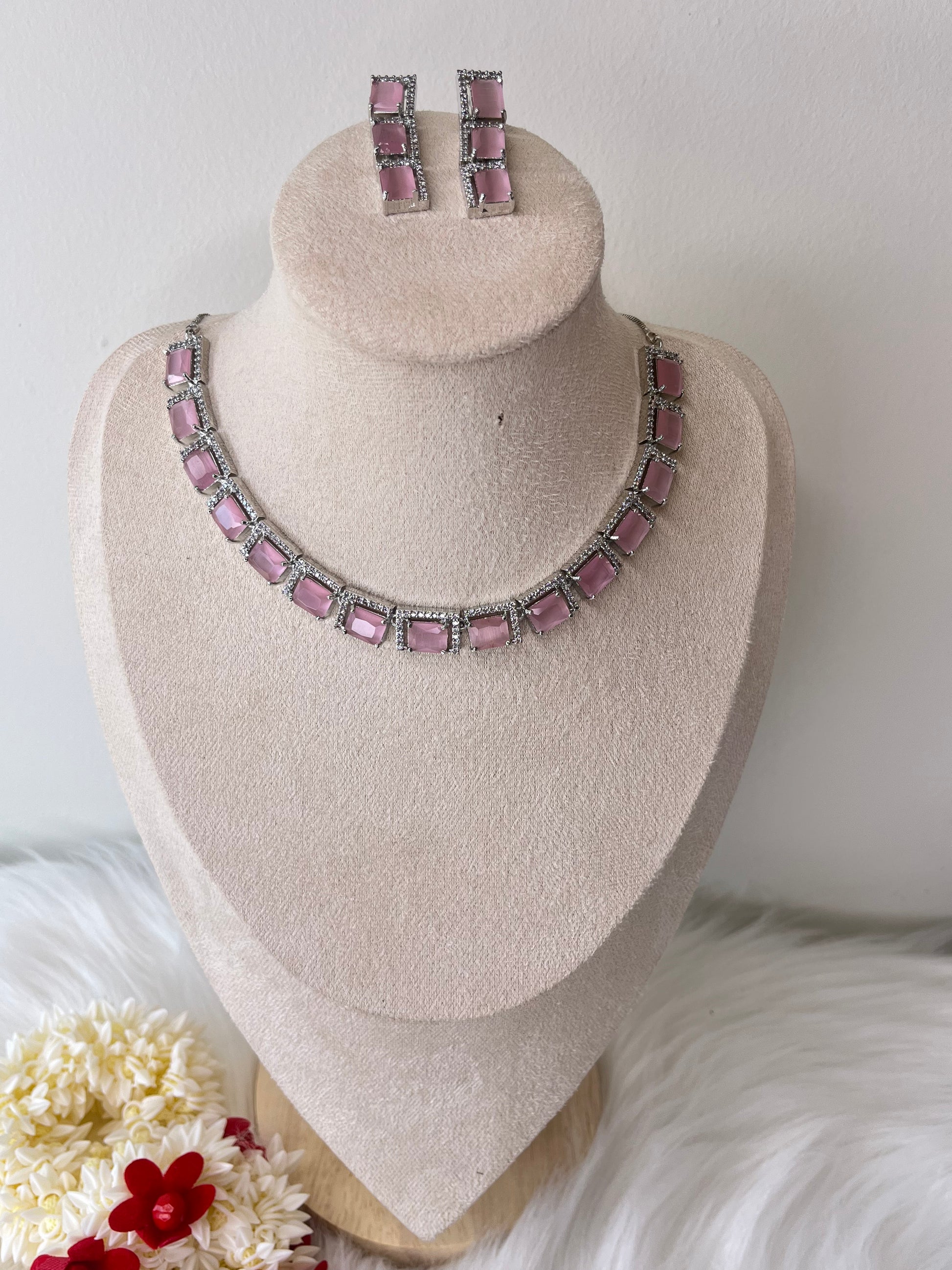 Elevate your elegance with this stunning American diamond set, where timeless sophistication meets modern allure. Each piece is meticulously crafted to capture light and attention, making it the perfect accessory for any occasion. Let this set be a testament to your refined taste and a dazzling addition to your collection.