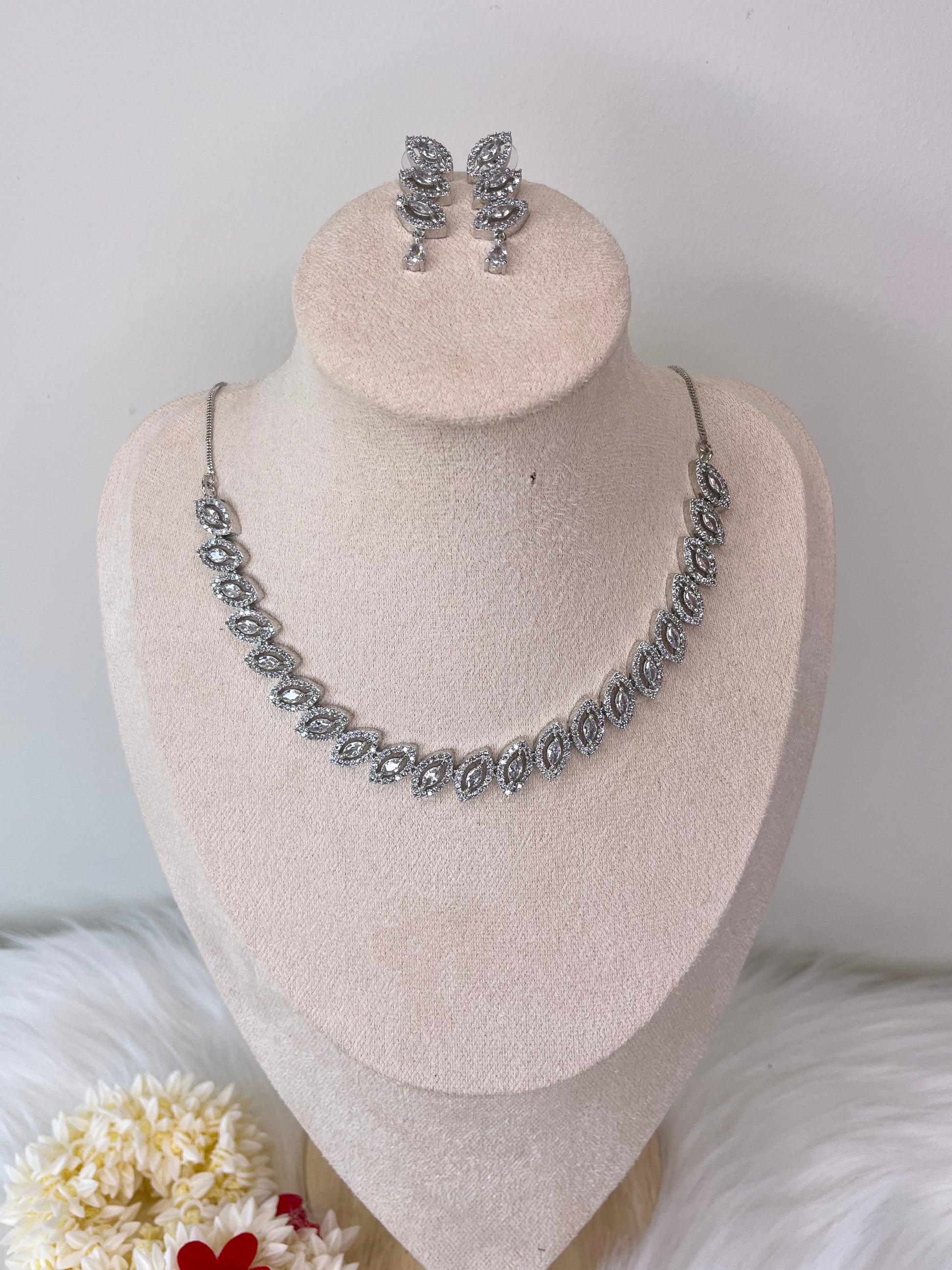 Elevate your elegance with this stunning American diamond set, where timeless sophistication meets modern allure. Each piece is meticulously crafted to capture light and attention, making it the perfect accessory for any occasion. Let this set be a testament to your refined taste and a dazzling addition to your collection.