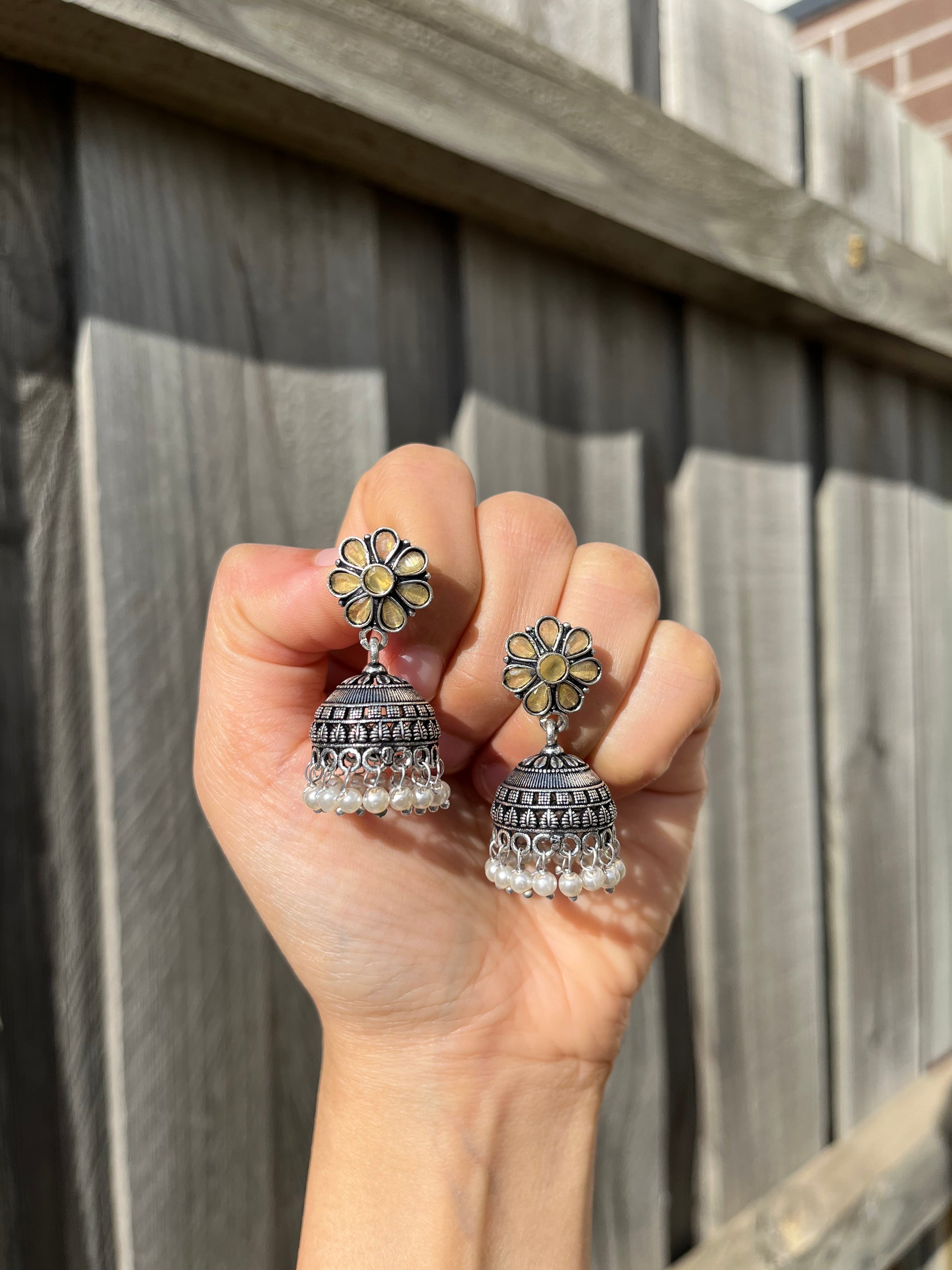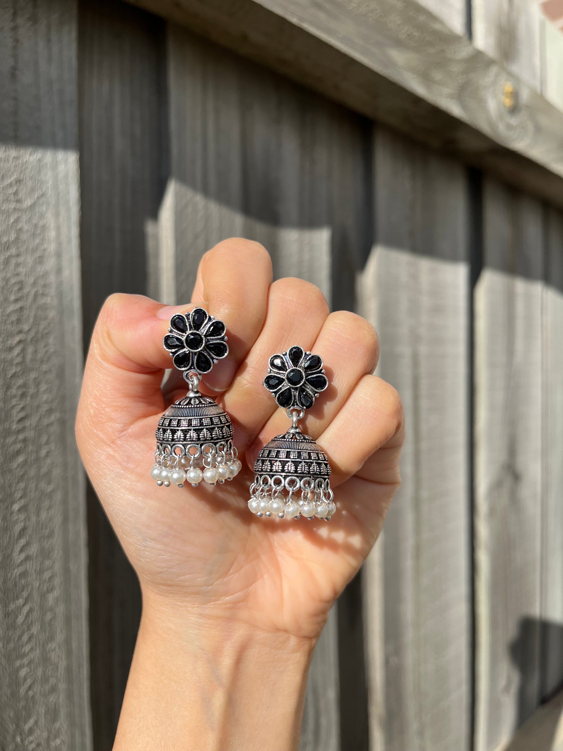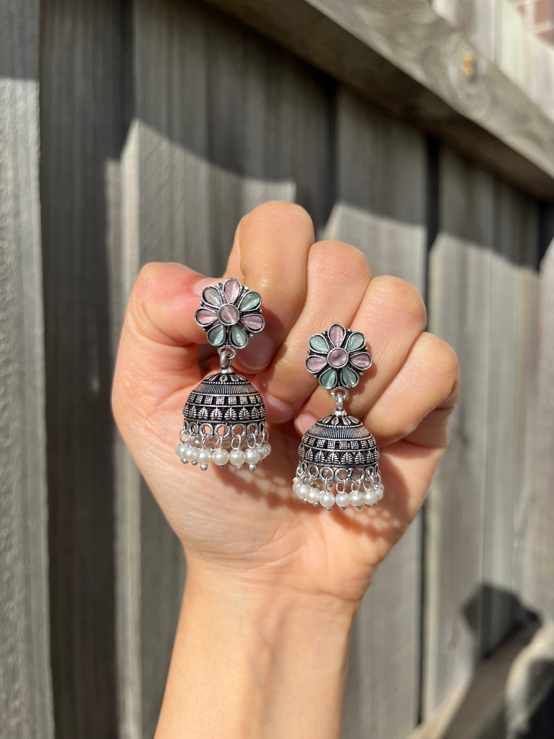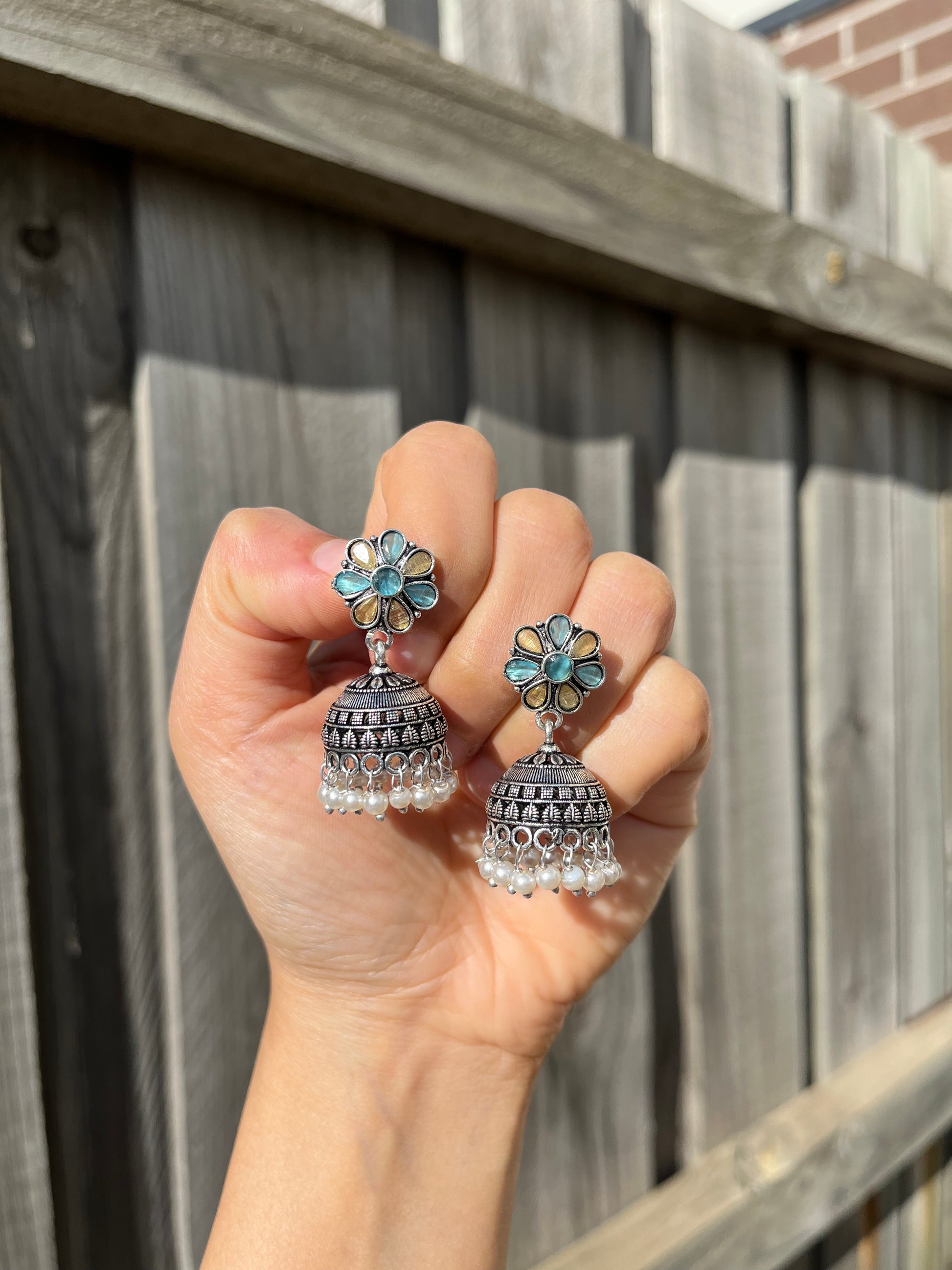 Super cute oxidised Jhumkis in stunning colours to pair with your Kurtis