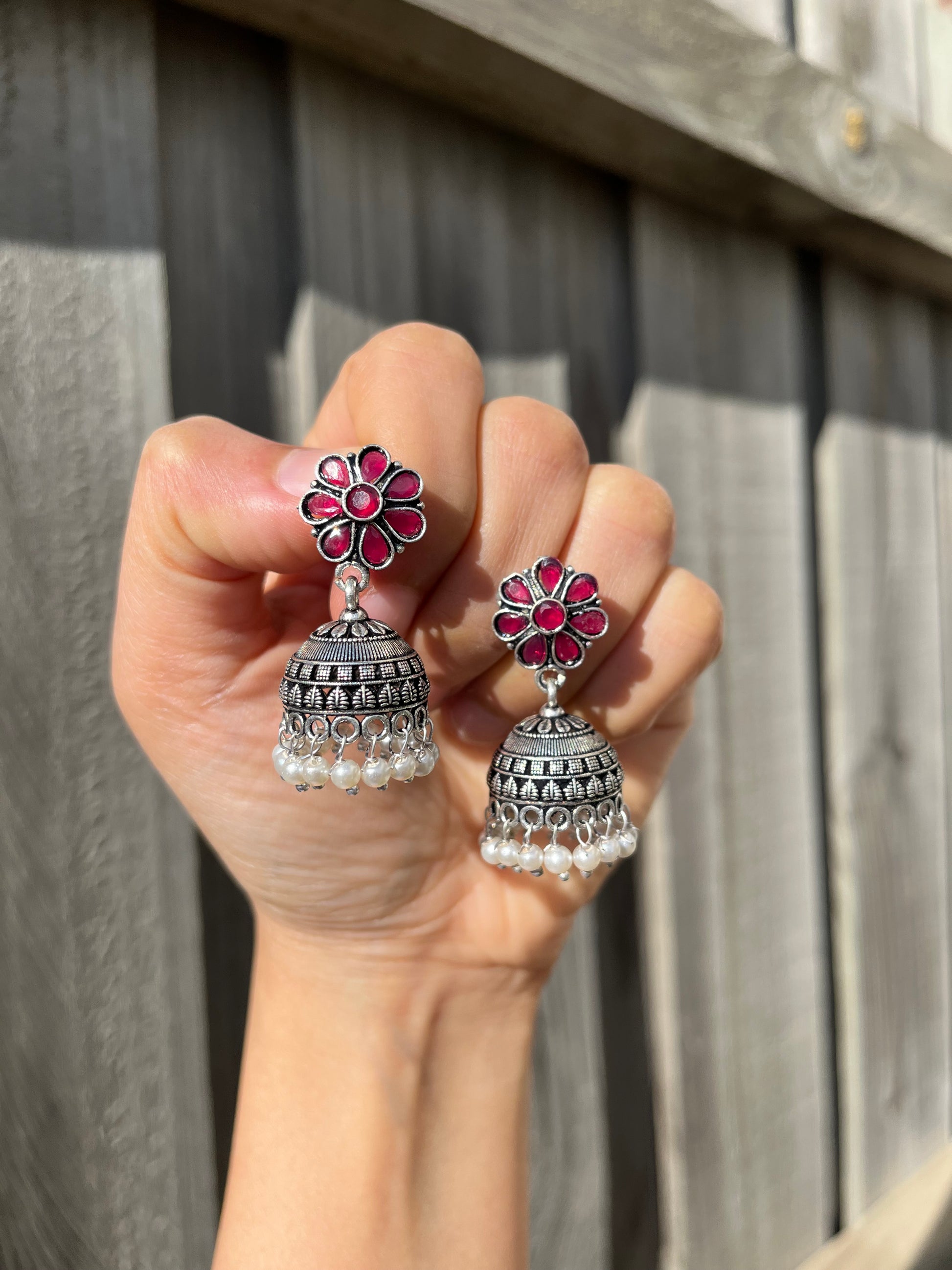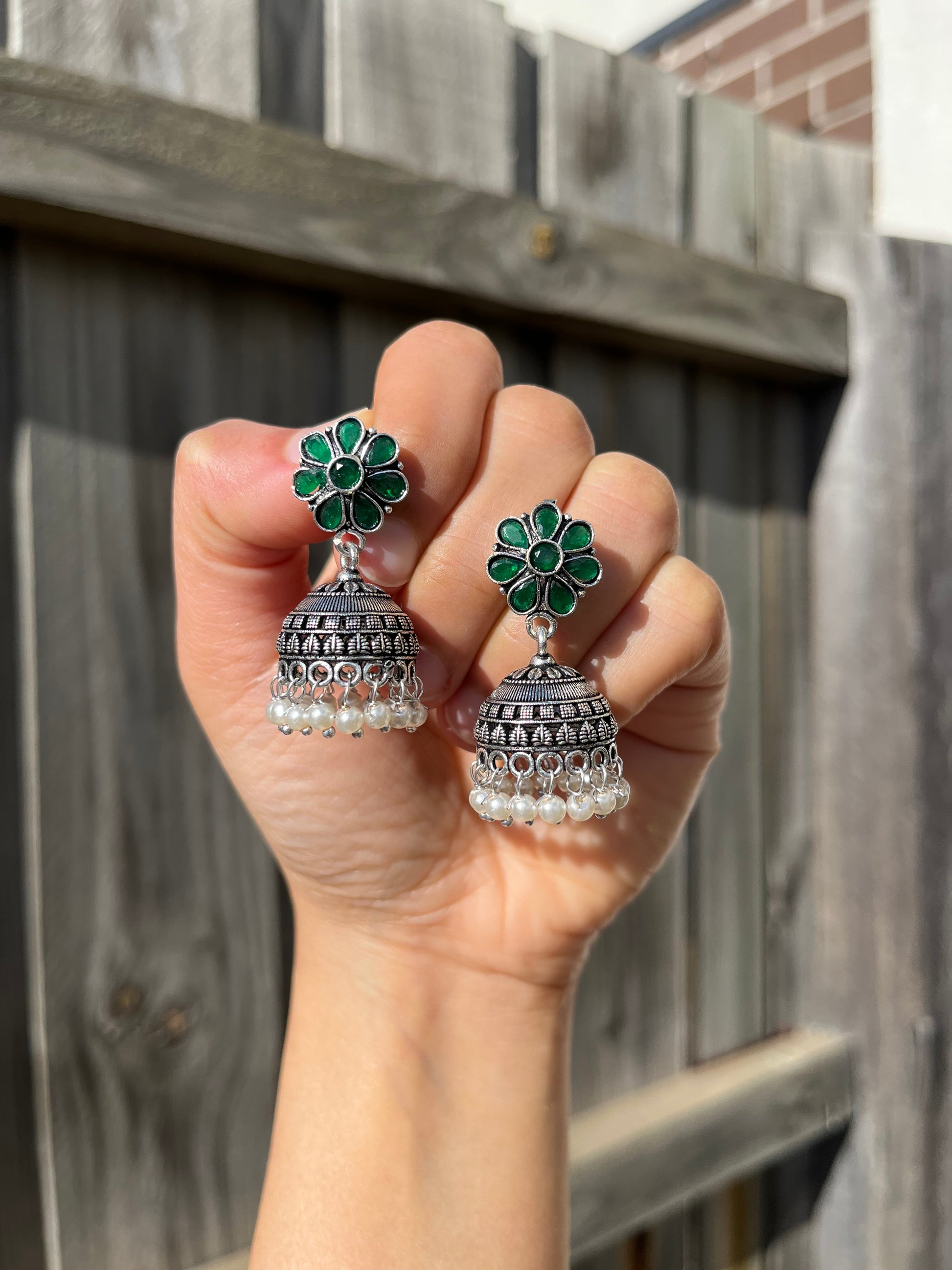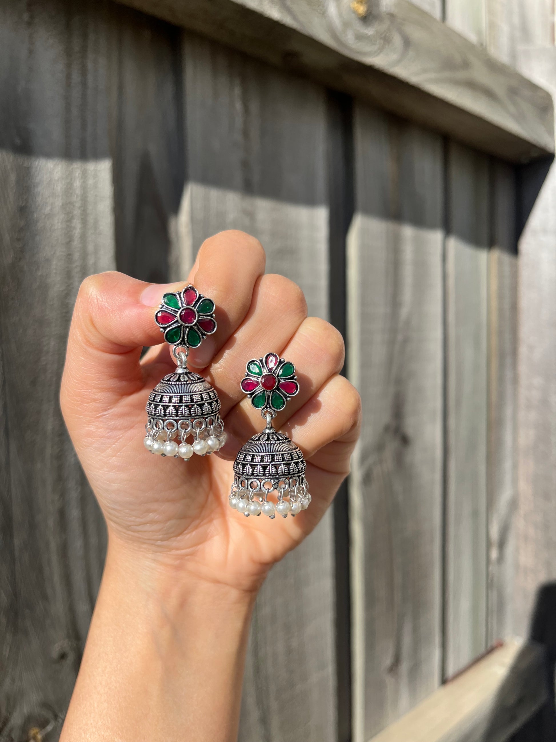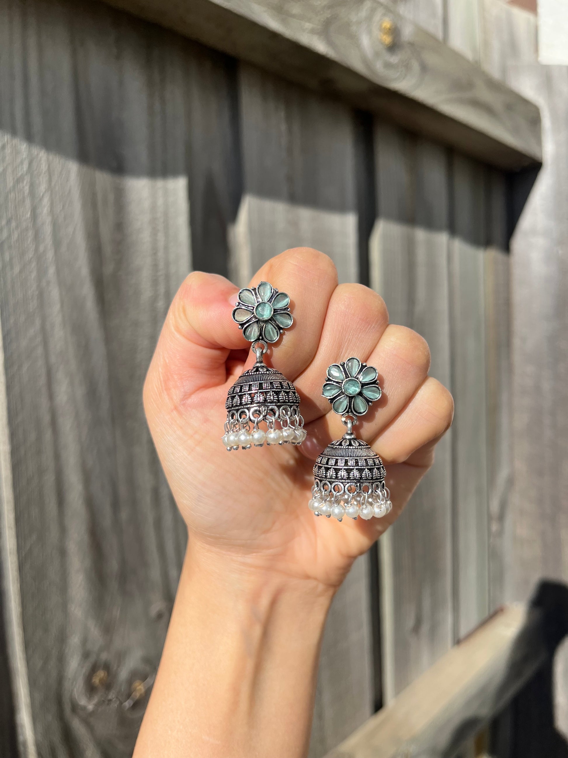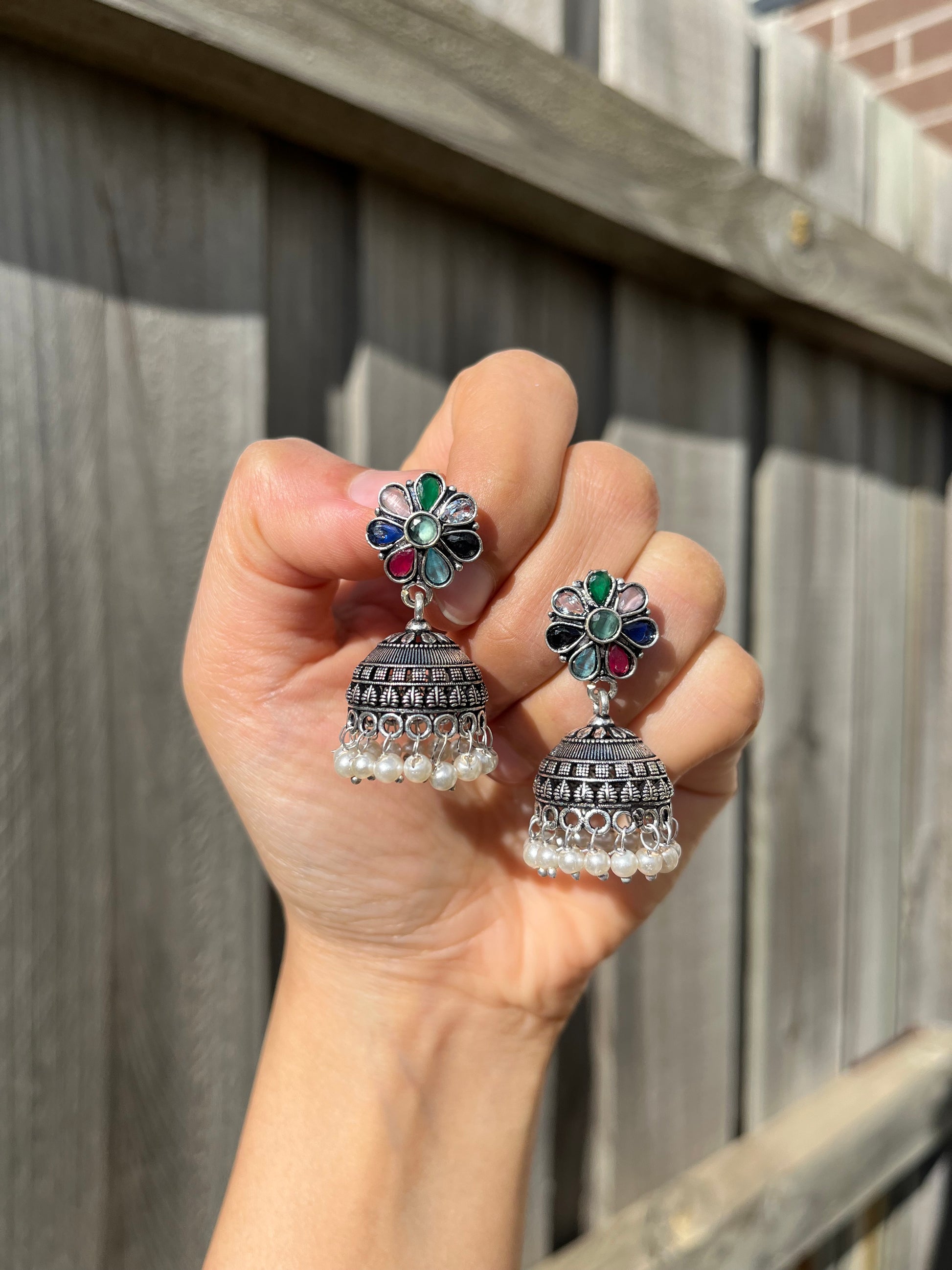 Super cute oxidised Jhumkis in stunning colours to pair with your Kurtis